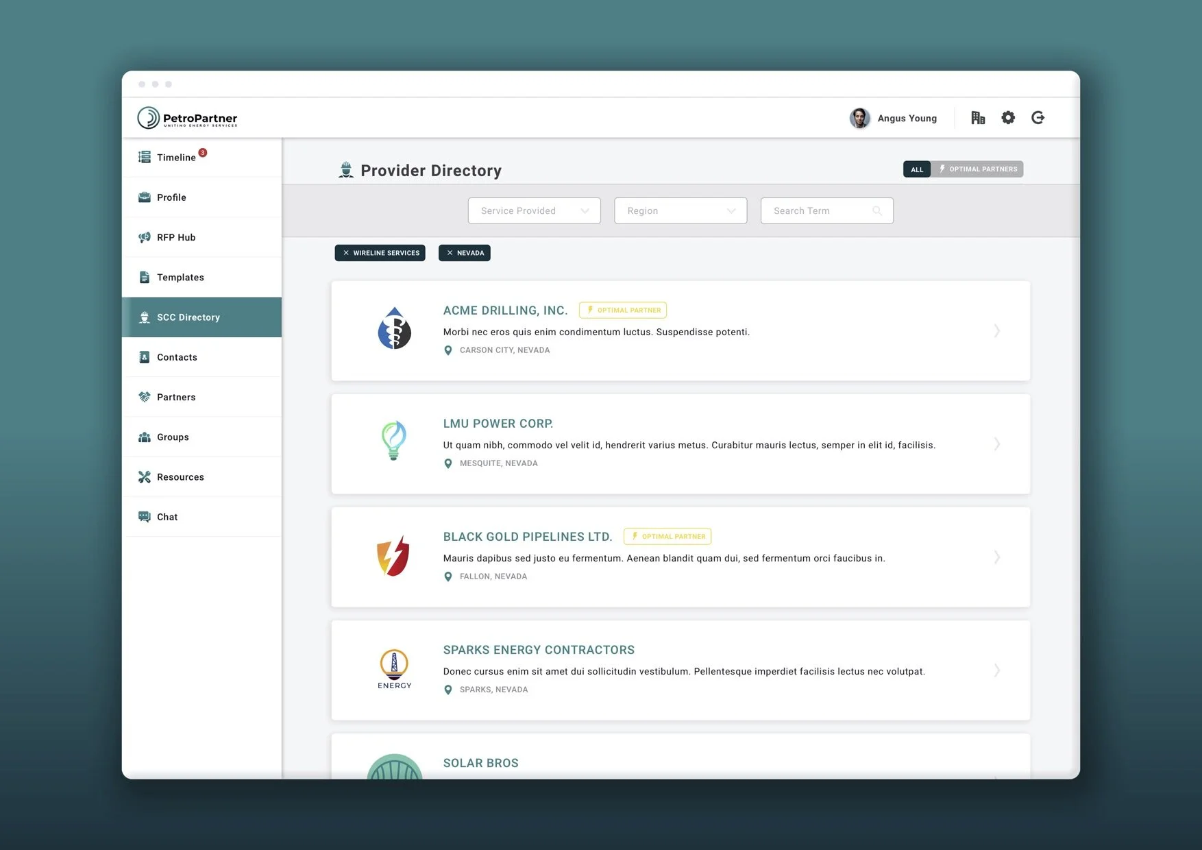 The solution that Harding Scott created enables energy companies (BP, Shell etc.) to easily filter contractors with regards to operational scale and compatibility. This greatly improves the efficiency of the proposal process. This coupled with a contractor retention system allows clients to communicate directly with key decision makers.